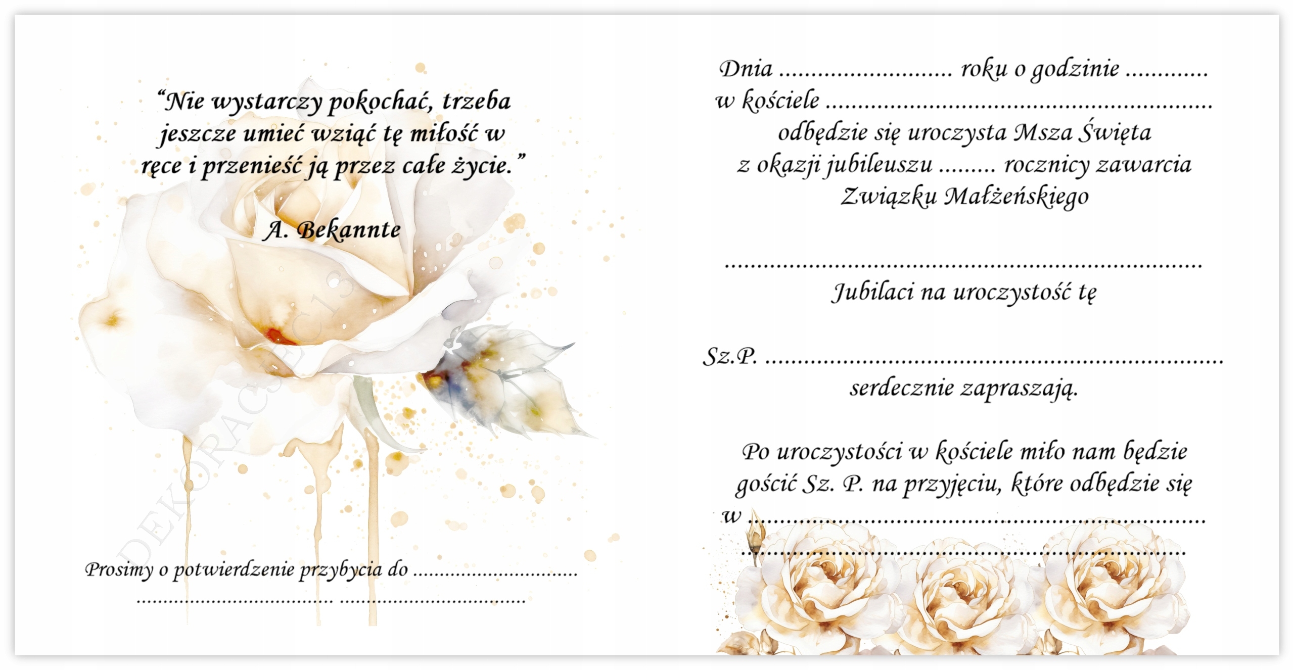Chcielibyśmy zaoferować Państwu niezwykle piękne zaproszenie na 50 rocznicę ślubu , złote gody.