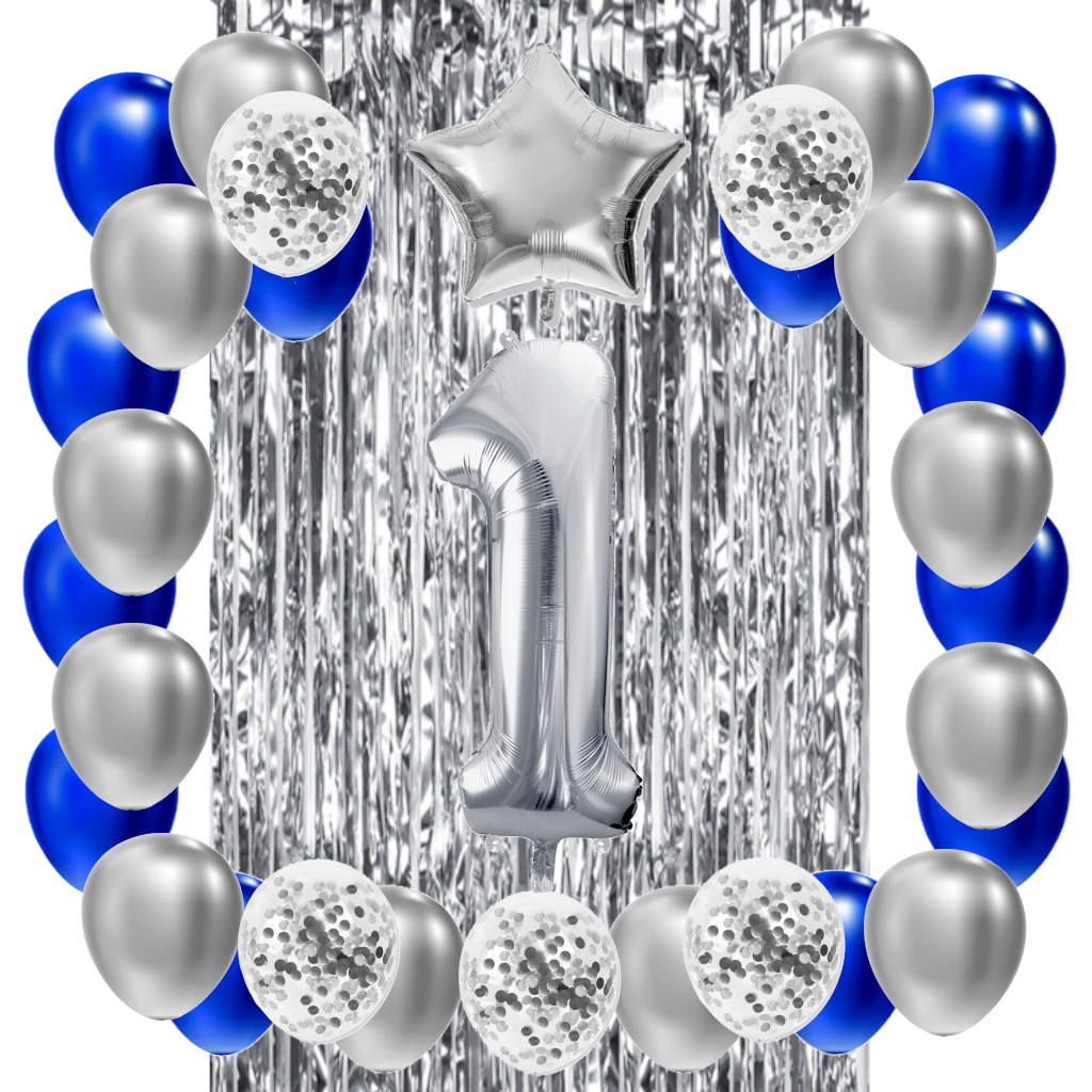 1 x Duży (ok. 100 cm) balon FOLIOWY "1" : kolor srebrny